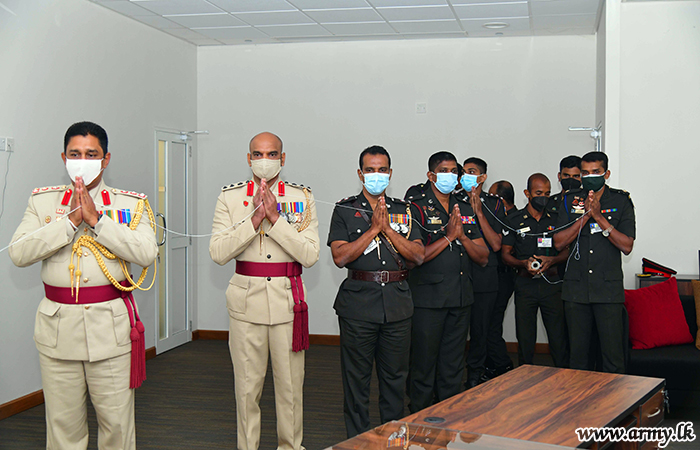 Members of the Maha Sangha invoked blessings on the new office before Brigadier Shewanth Kulatunge signed an official document to signify the formal acceptance of his new responsibilities.