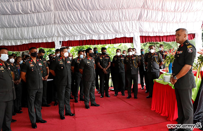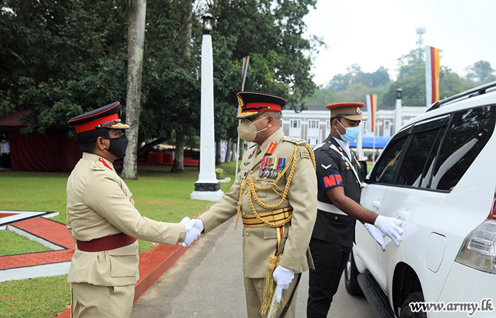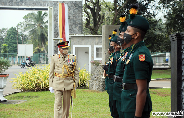 On his arrival at the premises, Sri Lanka Sinha Regiment troops saluted him in a Guard Turnout before Major General Sujeewa Senerath Yapa was invited to review the Guard of Honour, presented by SFHQ troops.