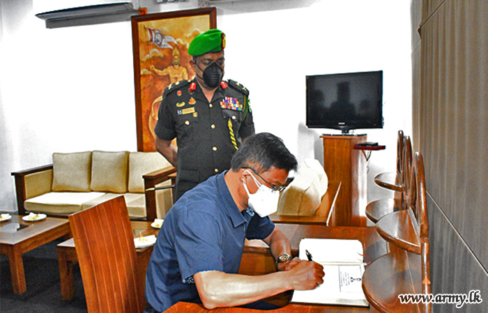 HE Qi Zhenhong, Ambassador of People's Republic of China during a visit to the north paid a courtesy call on the Commander, Security Forces -Wanni, Major General Champaka Ranasinghe at the SFHQ-Wanni on Wednesday (15).