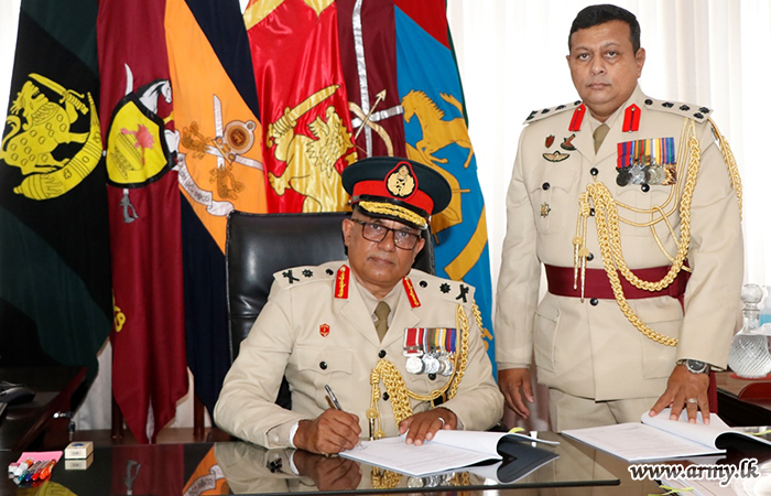 Afterwards, he was invited to plant a sapling in the compound as a symbol of memory. Later on, Major General Kithsiri Liyanage placed his signature in an official document to signify the acceptance of duties, amidst chanting of ‘Seth Pirith’. A few Senior Officers were also present at the venue.