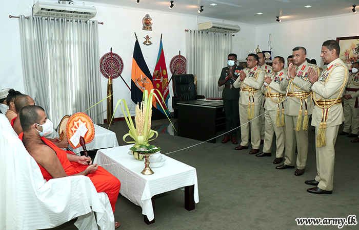 As members of the Maha Sangha began chanting of 'Seth Pirith', he afterwards symbolized the acceptance of the new office by placing his signature in the first official document in the presence of the Commander, Forward Maintenance Area (North), General Officers Commanding of 51, 52 and 55 Divisions and Senior Staff Officers at the Security Force Headquarters-Jaffna.