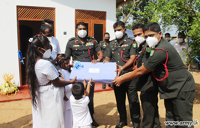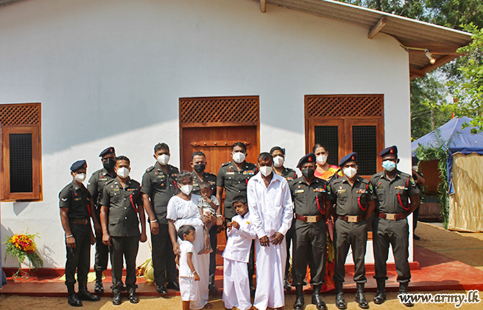 The Security Force Headquarters - Wanni (SFHQ-W) extending its community services further succeeded in erecting one more house for a needy family in Pemaduwa in the Anuradhapura District and vesting it in the beneficiaries on Sunday (19) during a brief ceremony.