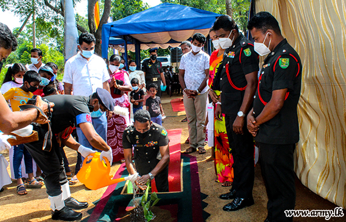 In response to the Army request, one Mrs Nilanthi Gunathilake, volunteered to sponsor the entire project. Major General Champaka Ranasinghe, Commander, Security Forces - West as the Chief Guest at the invitation of Major General Mohan Rathnayake, General Officer Commanding, 21 Division graced the inaugural warming ceremony of the new house built by the troops of the 5 (V) Sri Lanka Light Infantry.