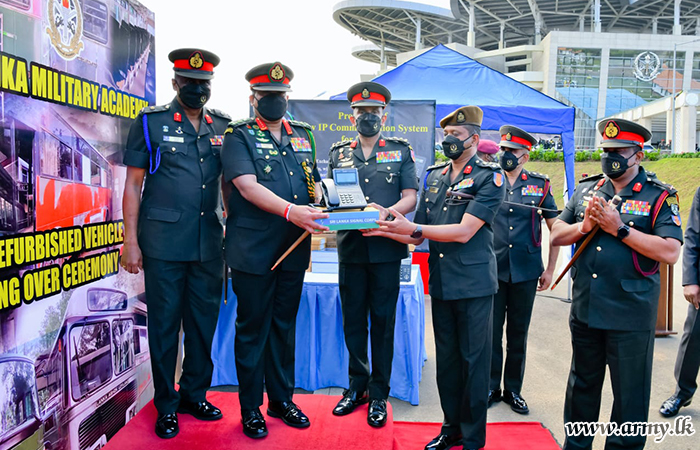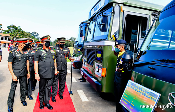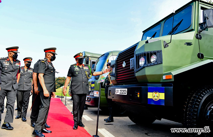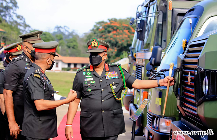 After the pipping ceremony, General Shavendra Silva, Chief of Defence Staff and Commander of the Army was invited to formally hand over the new fleet, inclusive of a Tata Star Bus, Ashok Leyland, Toyota Coaster, Unicolt truck (EME production) and an Electrical and Mechanical Engineers -produced Truck-mounted horse carrier, specially designed to SLMA horse stable. Those EME craftsmen of 2(V) SLEME under the guidance of Commanding officer of the 2(v) SLEME, attaching significance to the day where a new set of budding young Officers joined the organization.