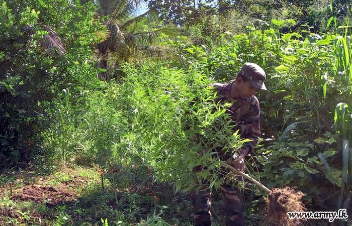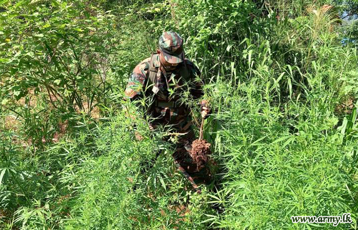 20 Sri Lanka Sinha Regiment troops of the 121 Brigade under the 12 Division on Monday (20) on information raided a cultivation of Cannabis in a 40- perch land plot in the general area of Kuda Oya and informed the local Police.