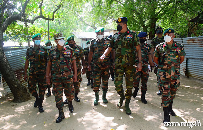 He first arrived at the 'A' Company of 6th Battalion of the Gajaba Regiment, Kadiraveli and inspected administrative aspects as well as welfare facilities of the troops in place. General Officer Commanding (GOC) 23 Division, Major General Nalin Koswatte and the Commander 233 Brigade Colonel Wasantha Hewage welcomed the visiting East Commander on arrival at the 233 Brigade Headquarters where he was greeted to a drive pass salute at the main entrance. He was then invited to plant a sapling in front of the Brigade Headquarters office and posed for a group photograph as memories.