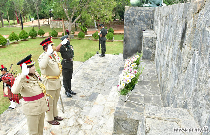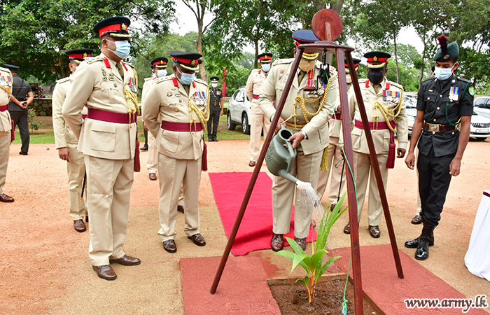 Upon his arrival at the Regimental Centre, he was greeted to a Guard Turn out and paid floral tributes to the memory of fallen War Heroes at the MIR monument before he was saluted in a formal Guard of Honour. Afterwards, he was invited to plant a sapling and address the Officers and Other Ranks of the Regiment. Refreshments with All Ranks ended the day's arrangement.