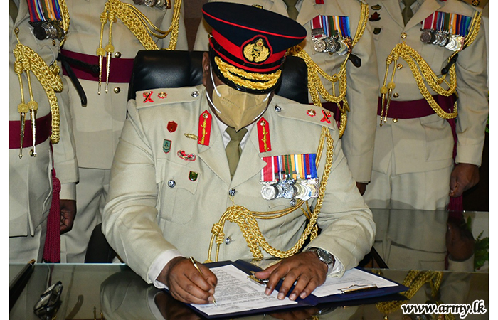 His formal acceptance of the new office was symbolized by placing his signature for a formal document after religious observances. The Centre Commandant, Brigadier Kumara Wanasinghe and Regimental Council Members, several Other Senior Officers along with Commanding Officers of the MIR formations were also associated with the inauguration of the new office.