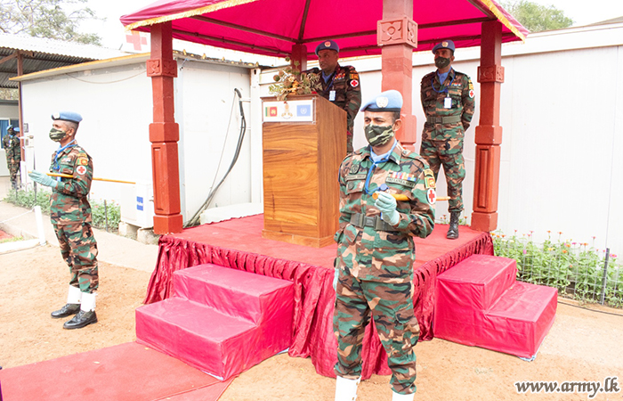 During the Contingent Commander’s speech to the occasion, he appreciated the commitment and dedication of all troop members for smooth function of the Level- 2 hospital and its infrastructural development as well as the sound coordination, carried out with other UN personnel. He also shared valuable compliments and praised Colonel R.K.P Pushpakumara, Consultant General Physician, Colonel U.A.L.D Perera, Consultant Anaesthetist, Lieutenant Colonel Thilak Wijerathna, Consultant Orthopaedic Surgeon and Lieutenant Colonel Navartnam Jayanthan, Consultant General surgeon for their valuable contribution to maintain UN standards of health care and quality with patient safety at the United Nations Level 2 Hospital.