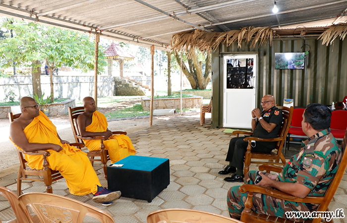 The visiting Major General Kithsiri Liyanage had a discussion with the Chief Incumbent, Ven Wathukumbure Dharmaratana Thero who is also the Head at Nelligala International Buddhist Centre on the remainder of construction work in the temple. On the same occasion, the monk invoked blessings on the visiting West Commander.