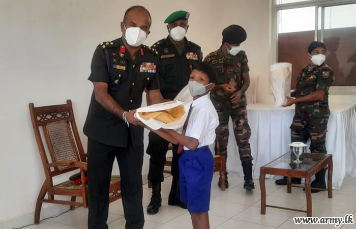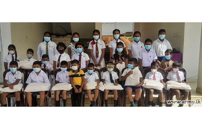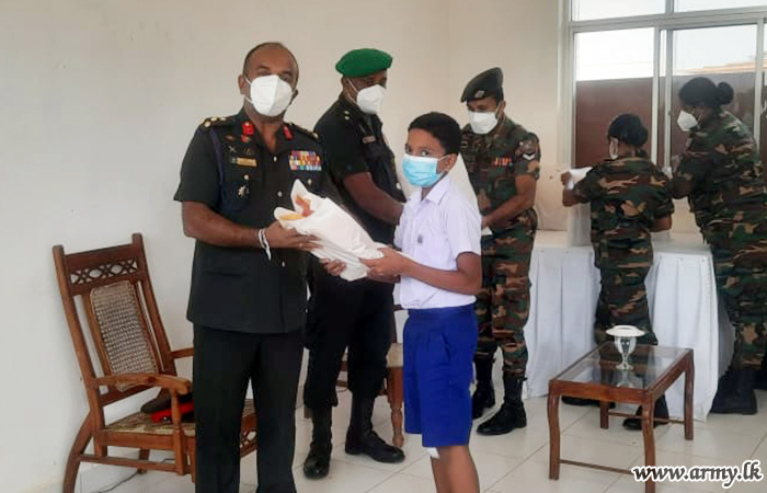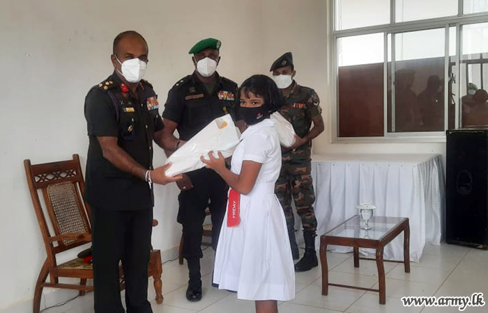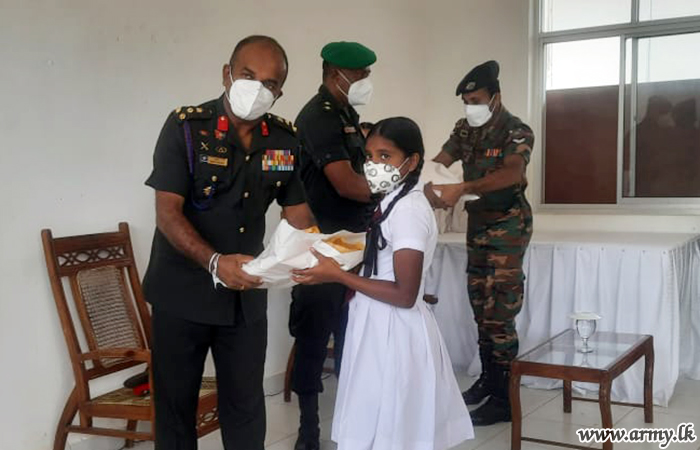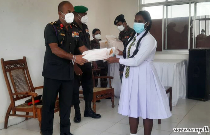 Each pack of school needs, valued at Rs 2000 was shared among students at Mapalana area in Kamburupitiya in order to care for those boys and girls in the 613 Brigade area on Friday (24).