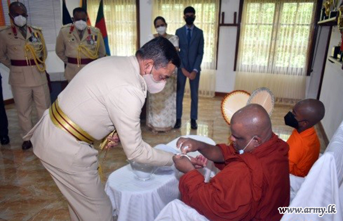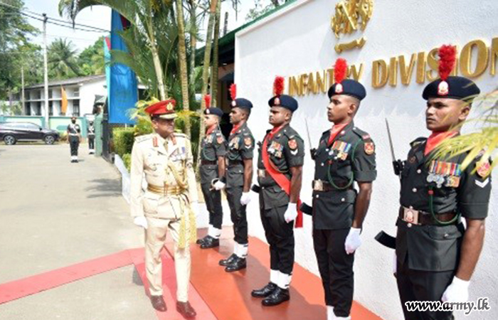 A formal Guard Turnout saluted the new GOC upon his arrival at the Division Headquarters premises by the troops of 14 (V) Gemunu Watch. Afterwards, amid religious blessings, he placed his signature for an official document and symbolized the acceptance of his new office.