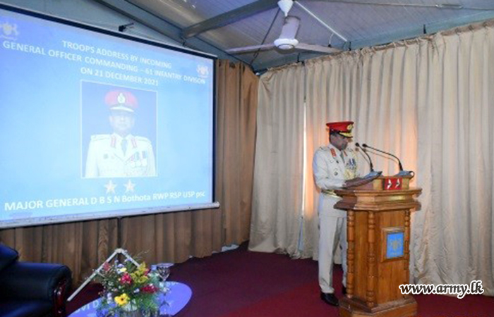 The 61 Division's new General Officer Commanding (GOC), Major General Swarna Bothota assumed duties on Tuesday (21) at the 61 Division Headquarters in Boossa.