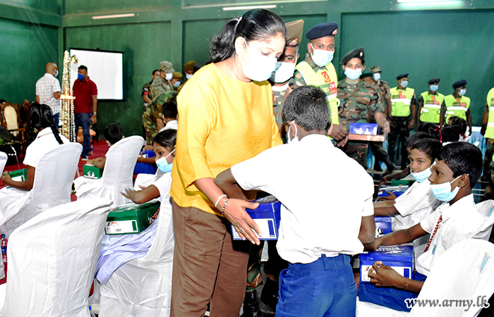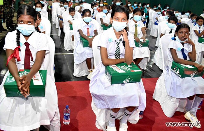 Selected students in Selvapuram, Yogapuram and Kopay areas along with their parents who arrived at respective locations to receive those sentiments expressed their gratitude to the Sri Lanka Army for assisting them to upgrade educational standards.