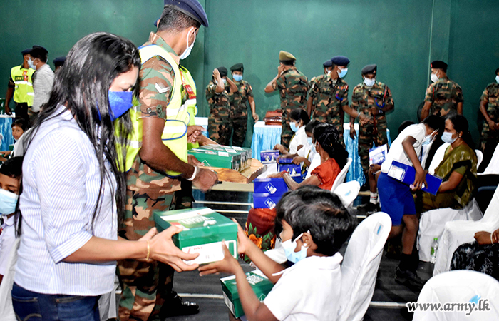The 51 Division HQ in Jaffna under the Security Force HQ-Jaffna practising the sentiments of X-mas for 'sharing and caring' on the Christmas day (25) with sponsorship, provided by several philanthropists, connected to the 51 Division's General Officer Commanding, Major General Chandana Wickramasinghe, took steps to distribute 150 pairs of school shoes after symbolically gifting those shoes to 50 students at the 51 Division HQ as the first phase of the project.