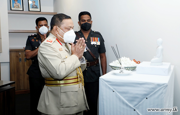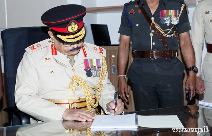 At his new office, Major General Chandana Wijesundara performed religious observances and symbolically placed his signature for a formal document to signify the acceptance of his new appointment.
