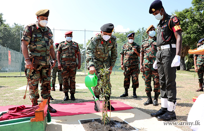 The troops address followed the planting of a Kumbuk sapling in the compound as a symbol of memory after he posed for group photographs. After an all rank tea, commander had an interaction with troops as a formality and underlined the importance of alertness to security, discipline of officers and other ranks, balance between work and personal life.