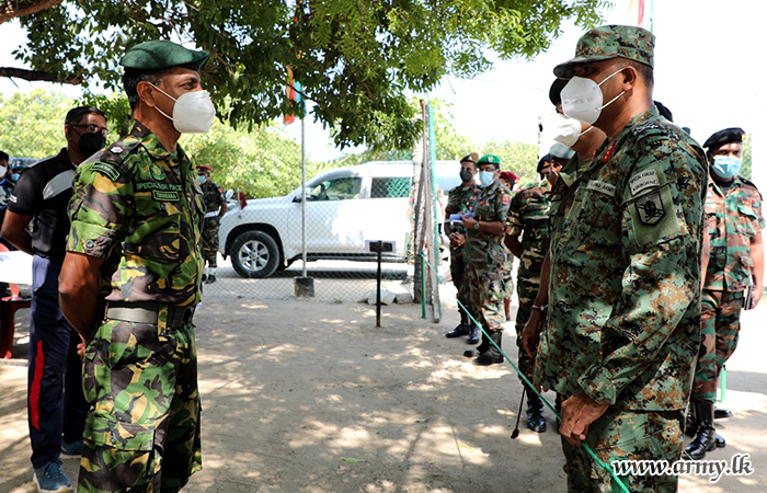 Major General Sujeewa Senarath Yapa, Commander, Security Forces Jaffna, made his first formal field visit to the 55 Division Headquarters in Kadeykadu on Monday (27) where he addressed the troops at the Division Headquarters.