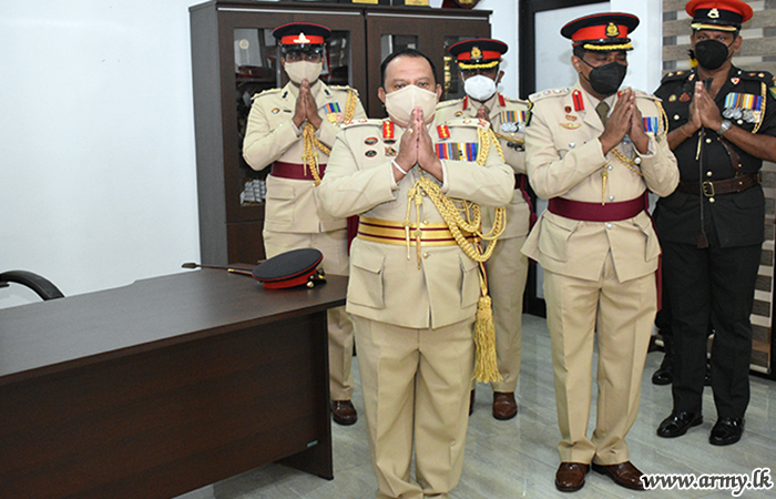 The 26th General Officer Commanding of the 56 Division of the Security Force HQ - Wanni Major General Saman Liyanage assumed office on Monday (20) amid 'Seth Pirith' blessings of the Maha Sangha at the 56 Division Headquarters.