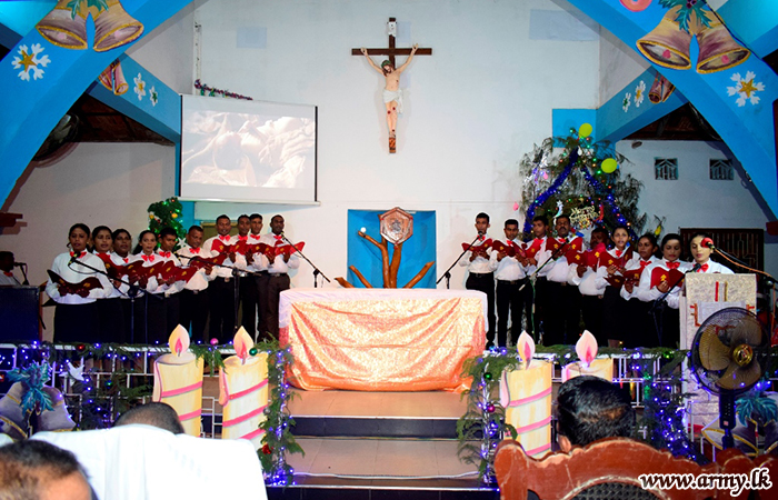 A special Christmas Carol programme, launched by the troops of the 66 Division was staged in the Pooneryn St. Mary’s Church premises on Tuesday (28) in consultation with church authorities.