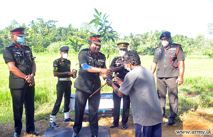 The project, initiated by Major General Indu Samarakoon, Logistic Commander gave away 200 saplings among civilians and planted 100 saplings in the Salawa hospital compound with the participation of the Chief Medical Officer, nurses and medical staff.