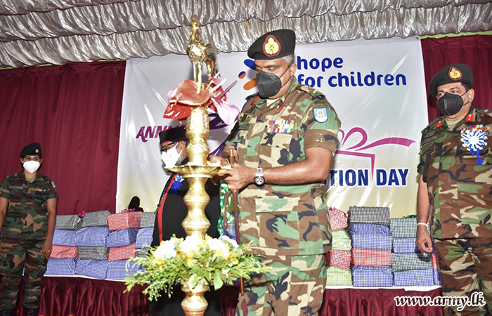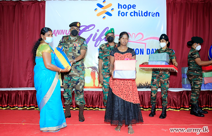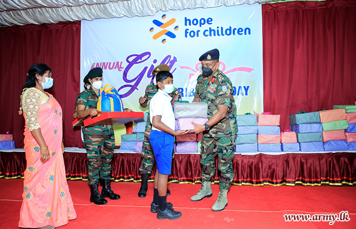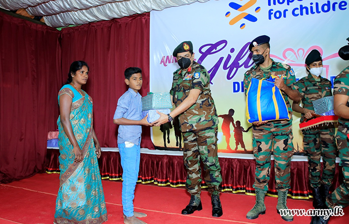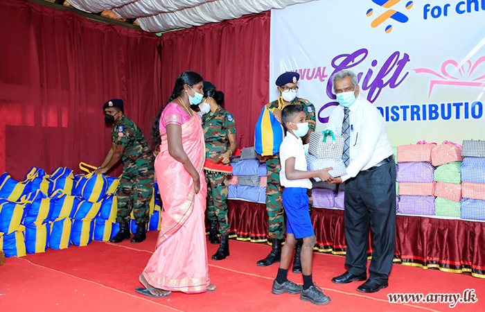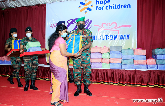 The “Hope of the Children” organization, aimed at supporting the uplift of the educational background of children in remote areas extended its sponsorship to the Security Force Headquarters - Mullaitivu (SFHQ-MLT) for welfare promotion of children and civilians, resident in the general of Vallipuram by distributing school accessories, clothes, shoes and dry ration packs for underprivileged families on Thursday (30).