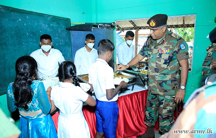 Major General Sanjaya Wanasinghe, Commander, Secrity Forces-MLT graced the occasion as the Chief Guest, together with representatives of donors, Major General Kirthi Bandara GOC, 68 Division, Brigadier Nalin Hettiarachchi, Commander 681 Brigade, Brigadier Chaminda Galappatti, Commander, 682 Brigade, Senior Officers, Officers, Other Ranks and - Principal Vallipunam School participated in the day's welfare projects.