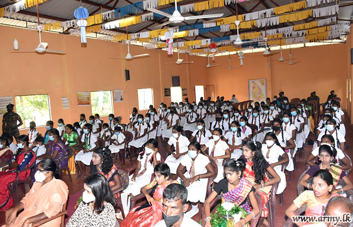 Accordingly, Major General Sanjaya Wanasinghe, Commander, Security Forces - MLT as the Chief Guest distributed those essentials including electric appliances, accessories, clothes, dry rations, etc to 101 girls and 15 staffers at Bharathi Children’s Home, situated in the area served by 23 Sri Lanka Sinha Regiment (SLSR) troops of the 592 Brigade and 15 girls and 5 staffers at Ladani Children’s Home, located in the general area, served by 24 SLSR troops under the 591 Brigade.