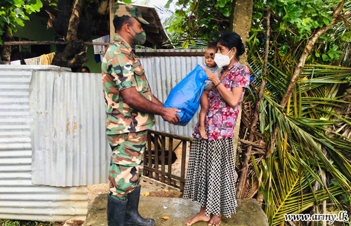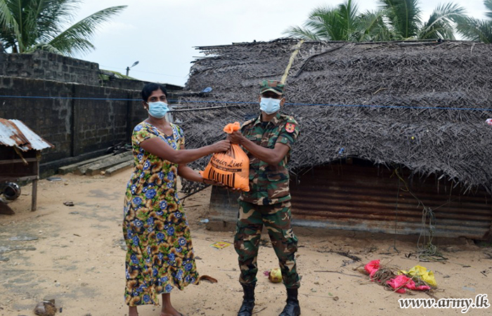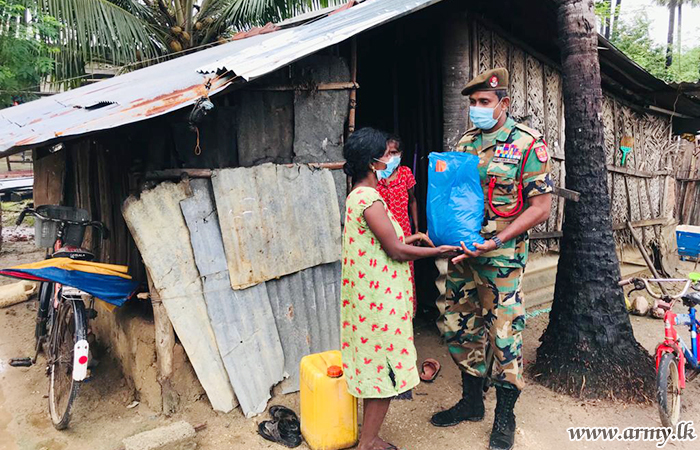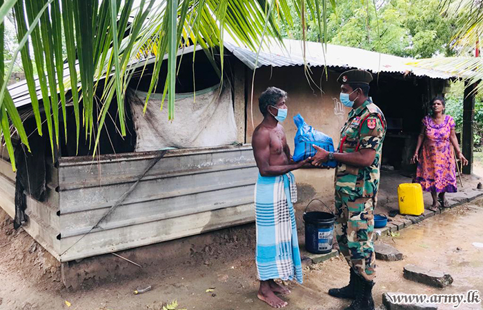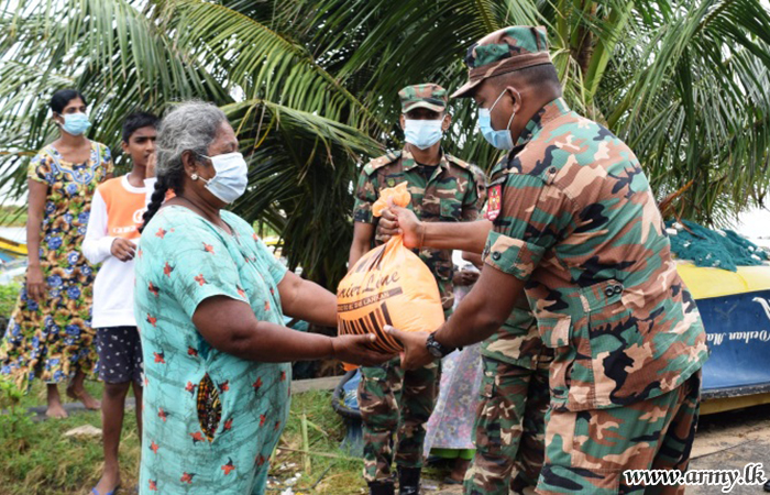 11 Sri Lanka Light Infantry, 11 Vijayabahu Infantry Regiment and 12 Gemunu Watch troops serving under 51, 52 and 55 Divisions of the SFHQ-J actively participated in the supply of those relief packs to their doorsteps by taking those parcels on Army vehicles. It was organized in consultation with Major General Sujeewa Senarath Yapa, Commander, Security Forces - Jaffna.
