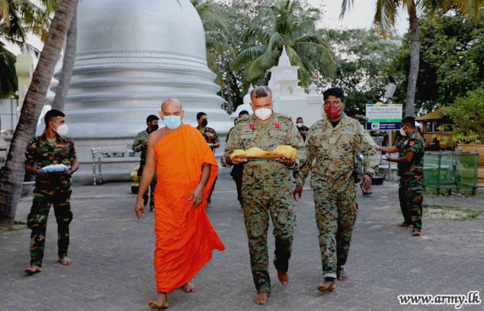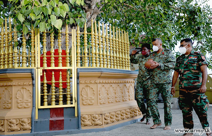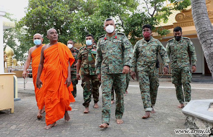 Major General Sujeeva Senarath Yapa, Commander, Security Forces - Jaffna who assumed duties recently paid homage to the historic Nagadeepa Vihara on Friday (7) and received blessings from the chief Incumbent at the Nagadeepa Temple, Venerable Navadagala Padumakittithissa Thero.
