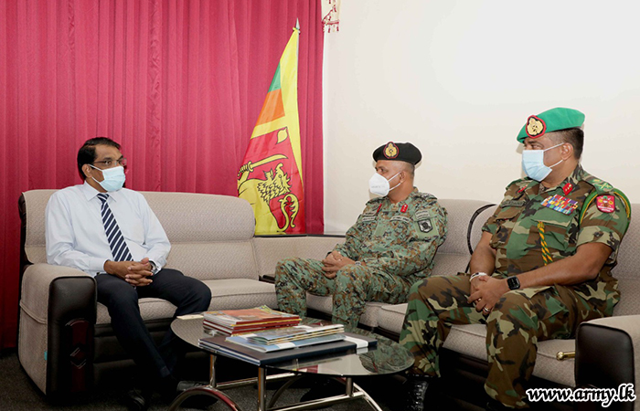 Meanwhile, on the same day (7), he paid a courtesy visit to the District Secretary for Jaffna and discussed important matters, related to COVID-19 control coordination, progress of the civil-military coordination, land releasing process and reconciliation in the Jaffna peninsula.