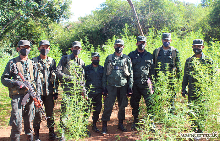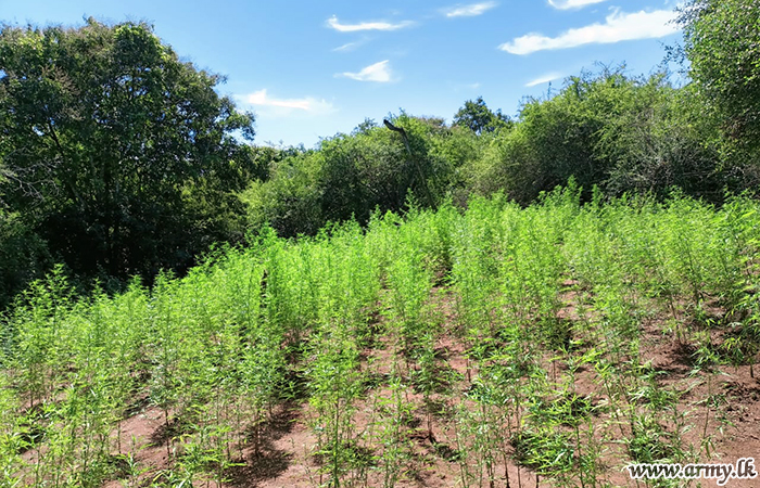 On information received from Military Intelligence, troops of the 20 Sri Lanka Sinha Regiment in the 121 Brigade and 12 Division under command to the Security Force HQ - Central on Thursday (6) raided a Cannabis (Ganja) cultivation in the general area of Wateheriyakanda in Tanamalwila and destroyed it.