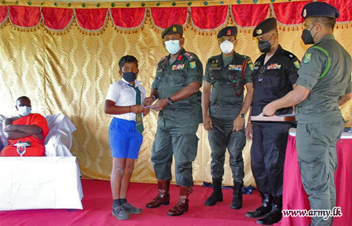 It was launched as a welfare activity to uplift their education standards and promotion of the goodwill between civilians and the Army. The event was graced by the Commander 542 Brigade, Civil Affairs Officer 542 Brigade, Commanding Officers, Senior Officers, the donor, Mr Isura Wickkramarachchi and officials of the foundation, principal and staff of the school and parents of the students.