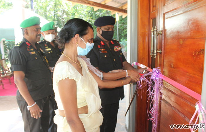 Generosity extended by the Army Seva Vanitha Unit's (ASVU) President, Mrs Sujeewa Nelson and the encouragement given by General Shavendra Silva, Chief of Defence Staff and Commander of the Army resulted in the construction of a new house to a Non-Commissioned Officer of the Sri Lanka Army serving at the Army Seva Vanitha Unit at the Army HQ whose house was burnt down due to an accidental fire.