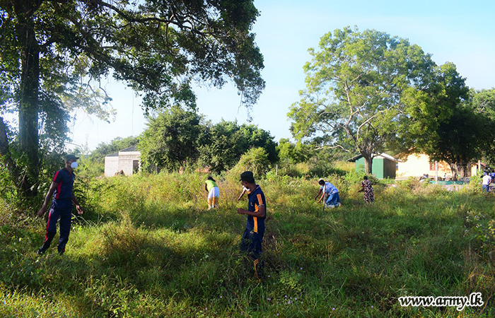 A group of parents and students joined hands with troops of the Security Force Headquarters - East (SFHQ-E) in order to carry out a 'Shramadana' campaign to clean up the school premises and its surroundings at Lumbini Primary School in Welikanda on Thursday (13) in the wake of looming Dengue outbreak.