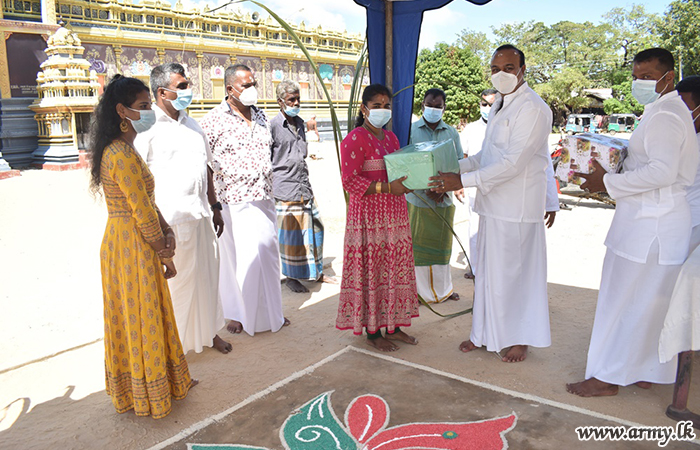 Further Brigadier Prasanna Gunarathne presented gifts to persons who supported to draw ‘Kolam’ in the Kovil premises and distributed ‘Pongal Rice’ among attendees after invoking blessings on the devotees.