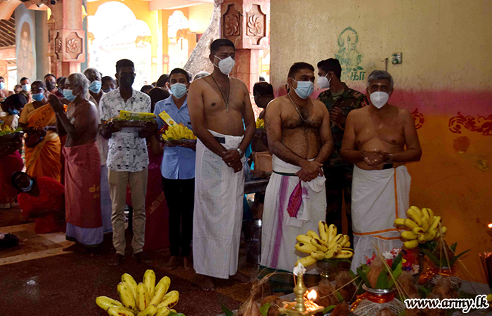 Further, troops cleaned the Kovil premises prior to the event and 150 lunch packets were also distributed to the devotees to mark the end of the program.