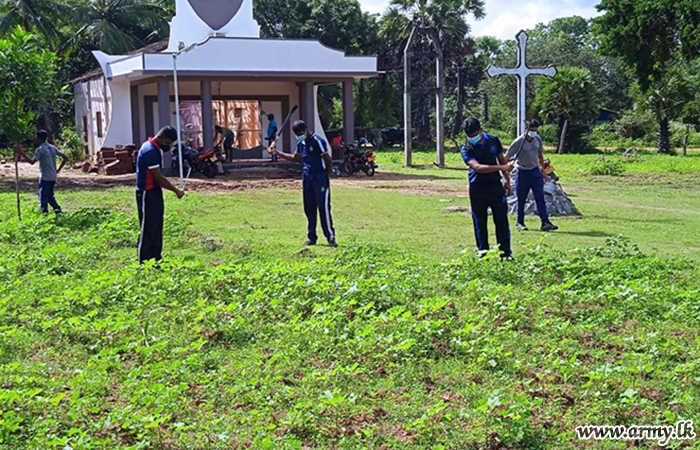 19 Sri Lanka Light Infantry (SLLI) Regiment troops serving the 651 Brigade of the 65 Division under the Security Force Headquarters - Wanni in order to promote goodwill between the troops and the people in the area carried out a Shramadana (self-help) project in the Xavier Church compound in Kalvilan on 14 January 2022.