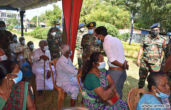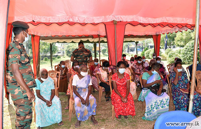The General Officer Commanding of the 57 Division, Major General Priyantha Jayawardena under the guidelines given by Major General Sanjaya Wanasinghe Commander, Security Forces-Mullaitivu, together with Brigadier Chaminda Gamlath, Commander, 571 Brigade and his troops attended to the conduct of the mobile clinic in the camp compound.