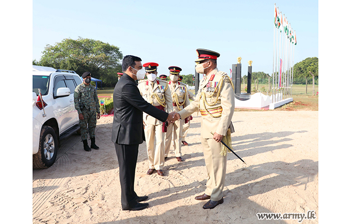 The acting Consul General of India in Jaffna, Mr. Ram Mahesh, together with the Commander Security Forces - Jaffna, Major General Sujeewa Senarath Yapa in a solemn ceremony placed floral wreaths at the monument in honour of those fallen heroes of the Indian Peace Keeping Force (IPKF) who laid their lives in defence of the country before 1991.