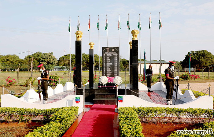 The memory of fallen IPKF War Heroes who laid their lives in Sri Lanka while fighting against LTTE terrorists, hand in hand with Sri Lankan Armed Forces was refreshed at the Indian Peace Keeping Force (IPKF) monument in Palaly, Jaffna on Wednesday (26) to coincide with the commemoration of the 73rd Republic Day of India.