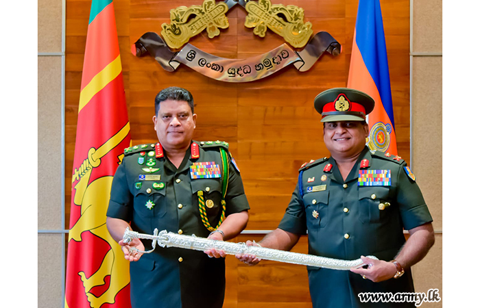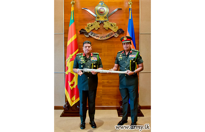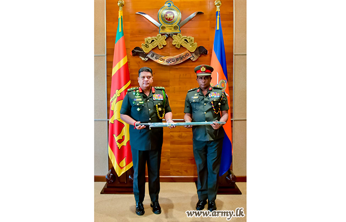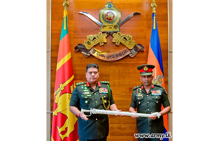 General Shavendra Silva extending congratulations, greetings and best wishes to all seven of them separately pinned their new Major General insignia afterwards and handed over the symbolic sword of authority to each of them.