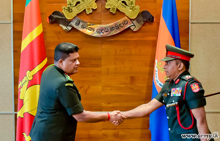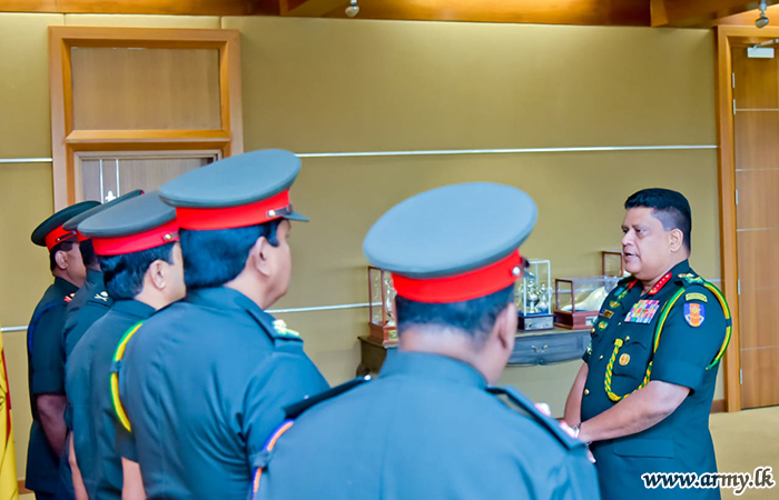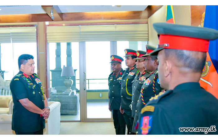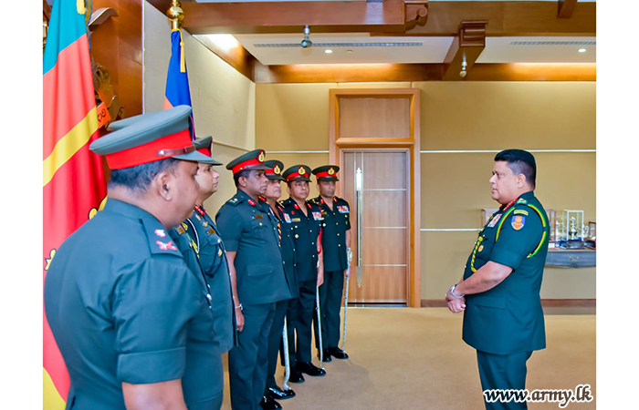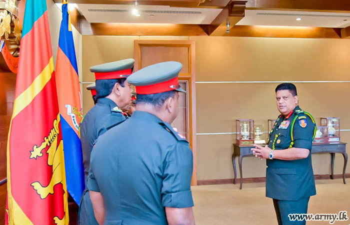 Seven more Senior Brigadiers of the Army, just promoted to the rank of Major General in parallel with the historic 74th National Independence Day this afternoon (3) called at the office of General Shavendra Silva, Chief of Defence Staff and Commander of the Army at Sri Jayawardenepura in order to receive their rank insignia and the Commander's best wishes.
