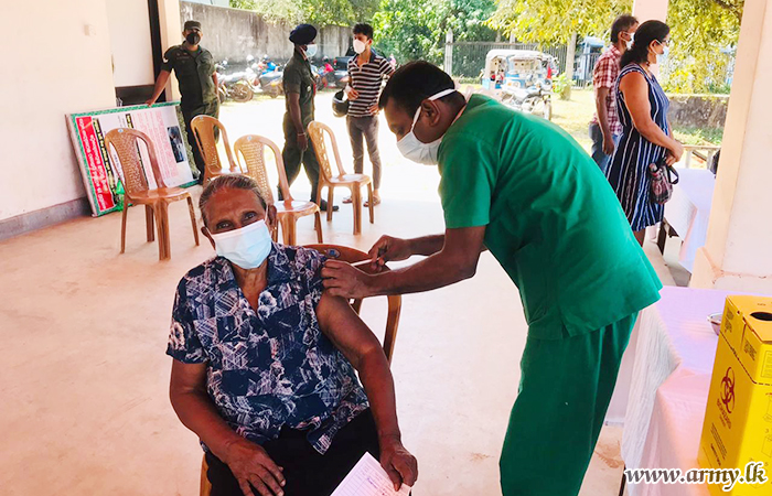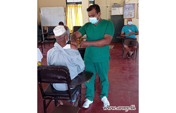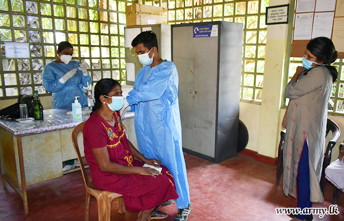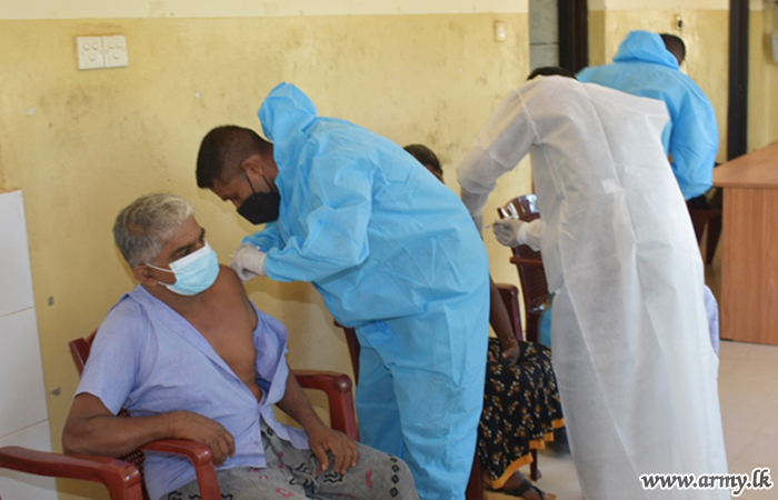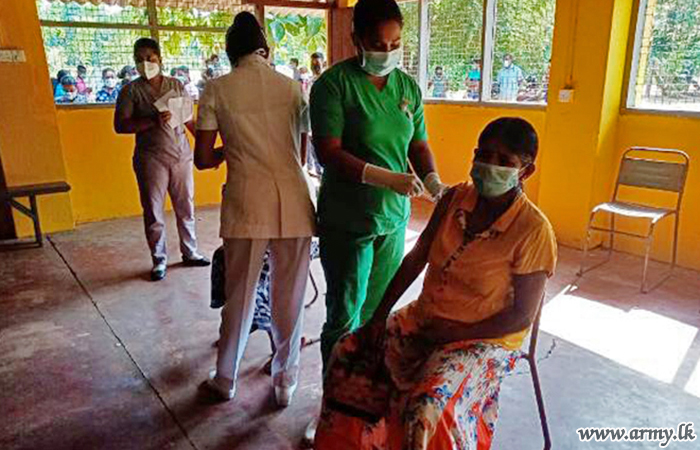 Similarly, Army's sustained support to the ongoing national vaccination drive as per directions of the Chief of Defence Staff and Commander of the Army General Shavendra Silva, the Security Force HQ-Wanni on the guidelines given by Major General Champaka Ranasinghe, Commander, Security Forces-Wanni has launched the vaccination drive covering 6 districts, being served by Wanni Security Forces.