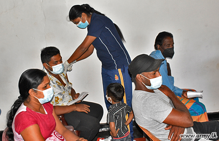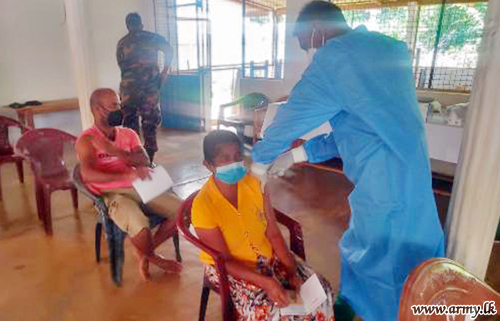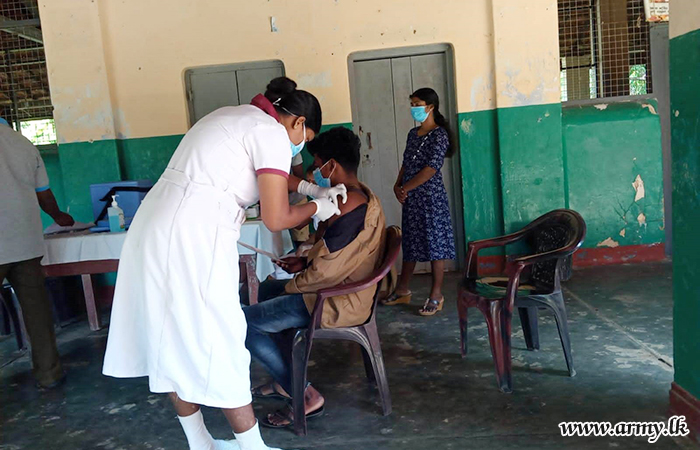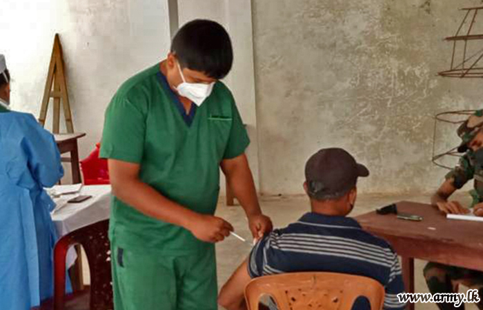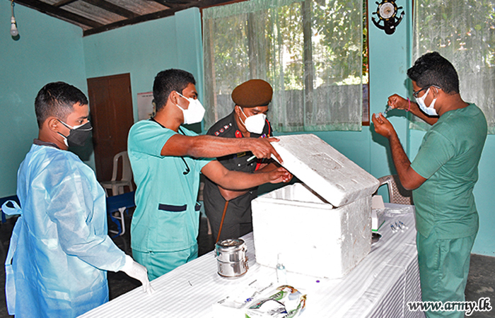 Through the coordination of government Health Officials, Sri Lanka Army Medical Corps troops, attached to the 14 Division under command to the Security Force HQ-West, 53 Division HQ, Security Force HQ-Jaffna, 11 Division under command to the Security Force HQ-Central and all other Divisions under Security Force HQs across the island are currently busy holding those vaccination projects.