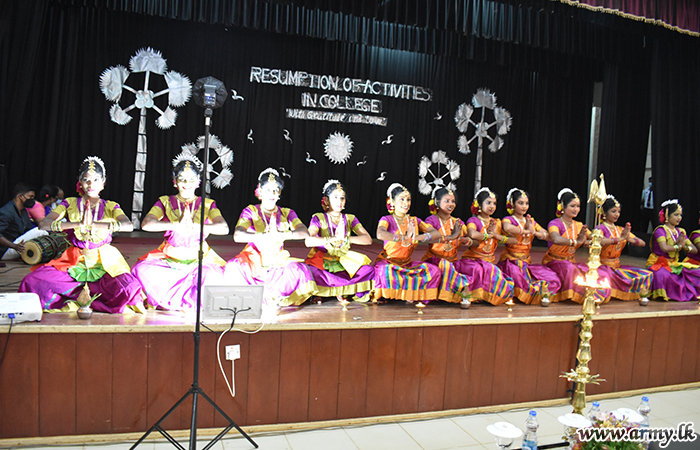 At the entrance, Major General Chandana Wickramasinghe was warmly welcomed in traditional manner by Mr Subramaniyam Paramananthan, President of the National College of Education - Jaffna along with other senior staffers.