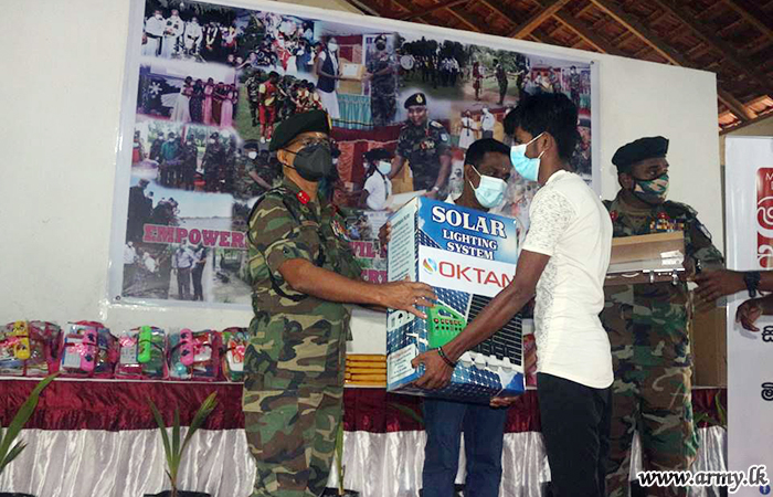 A mega community-oriented project that provided spectacles, solar panels, farming and school accessories and coconut saplings to deserving communities in Mullaittivu and Kilinochchi areas got underway on Saturday (12) with sponsorships provided by own Army troops, ‘Manusath Derana’ programme and the Suwa Shanthi Hospital at Anuradhapura.