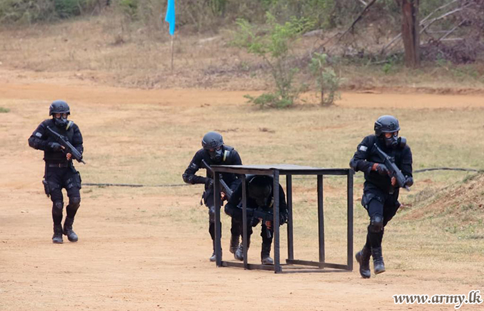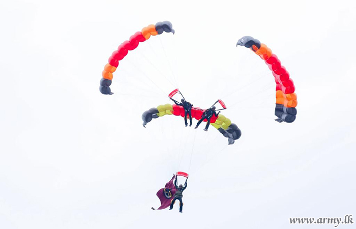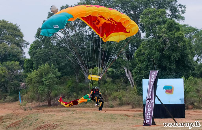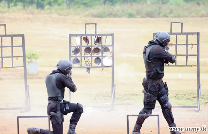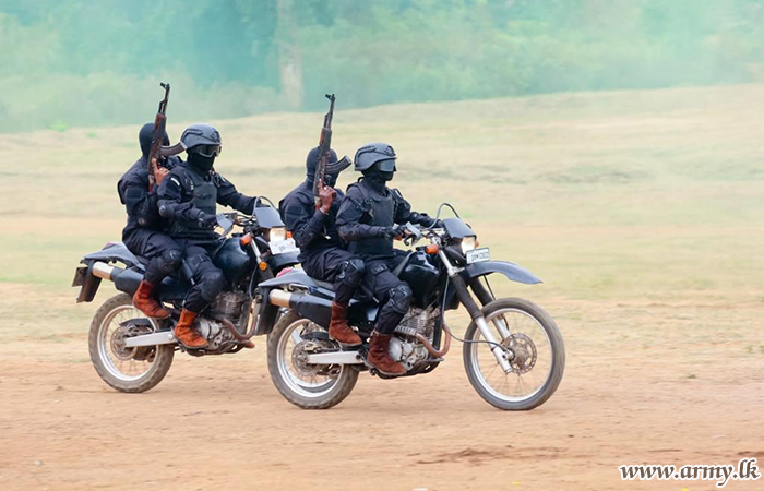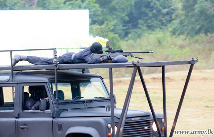 The gathering at Uva-Kudaoya Commando Regiment Training School (CRTS) for the Passing out Parade (PoP) of the latest group of 157 Commandos was stunned and thrilled as they were exposed to the daring spectacle of skills of those Commandos, exhibited in simulated demonstrations. Sniper demonstrations, Real Fighting Techniques, VIP Protection Displays, Hostage Rescue and Counter-Terrorism Demonstration, Firing Demonstration, Man vs Man Shooting Demonstration, K9 (War Dogs)-Handling Display and Freefall Parachute Display, etc as the final event of the day’s programme.
