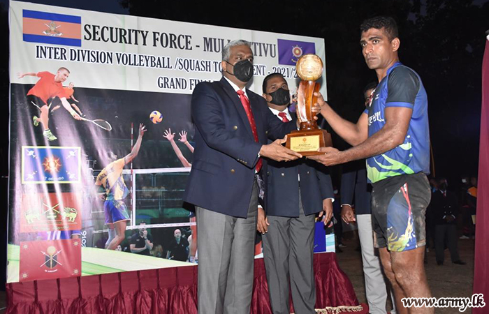 Major General Anil Ilangakoon, Colonel Commandant of the Sri Lanka Army Corps of Military Police (SLCMP) and Commander, Forward Maintenance Area (FMA) - Mullaittivu was instrumental in organizing both tournaments and the Commander, Security Forces - Mullaittivu, Major General Sanjaya Wanasinghe as the Chief Guest during the awarding ceremony. The trophy for the Best Setter of the Inter Division Volleyball Tournament was won by Sergeant M. Jayasinghe of the 66 Division and the trophy for the Best Attacker of the Inter Division Volleyball Tournament was clinched by Lance Corporal S. Nilanka of the 66 Division.