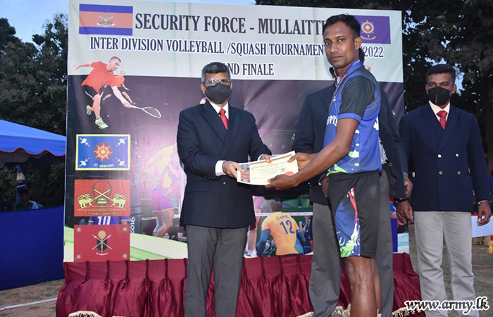 The finals of the Inter Division Squash and Volleyball Tournaments under the Security Force Headquarters - Mullaittivu (SFHQ-MLT) got underway at SFHQ-MLT premises on 19 February 2022 after tournament rounds were held at respective Division and Brigade levels in the past two weeks.